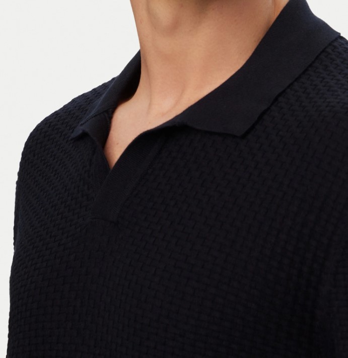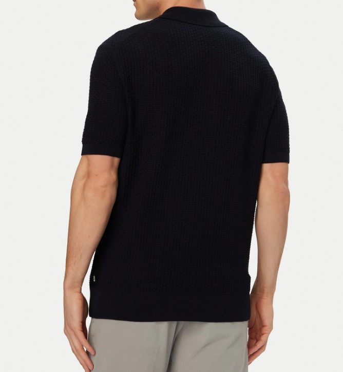 - Blue polo shirt
