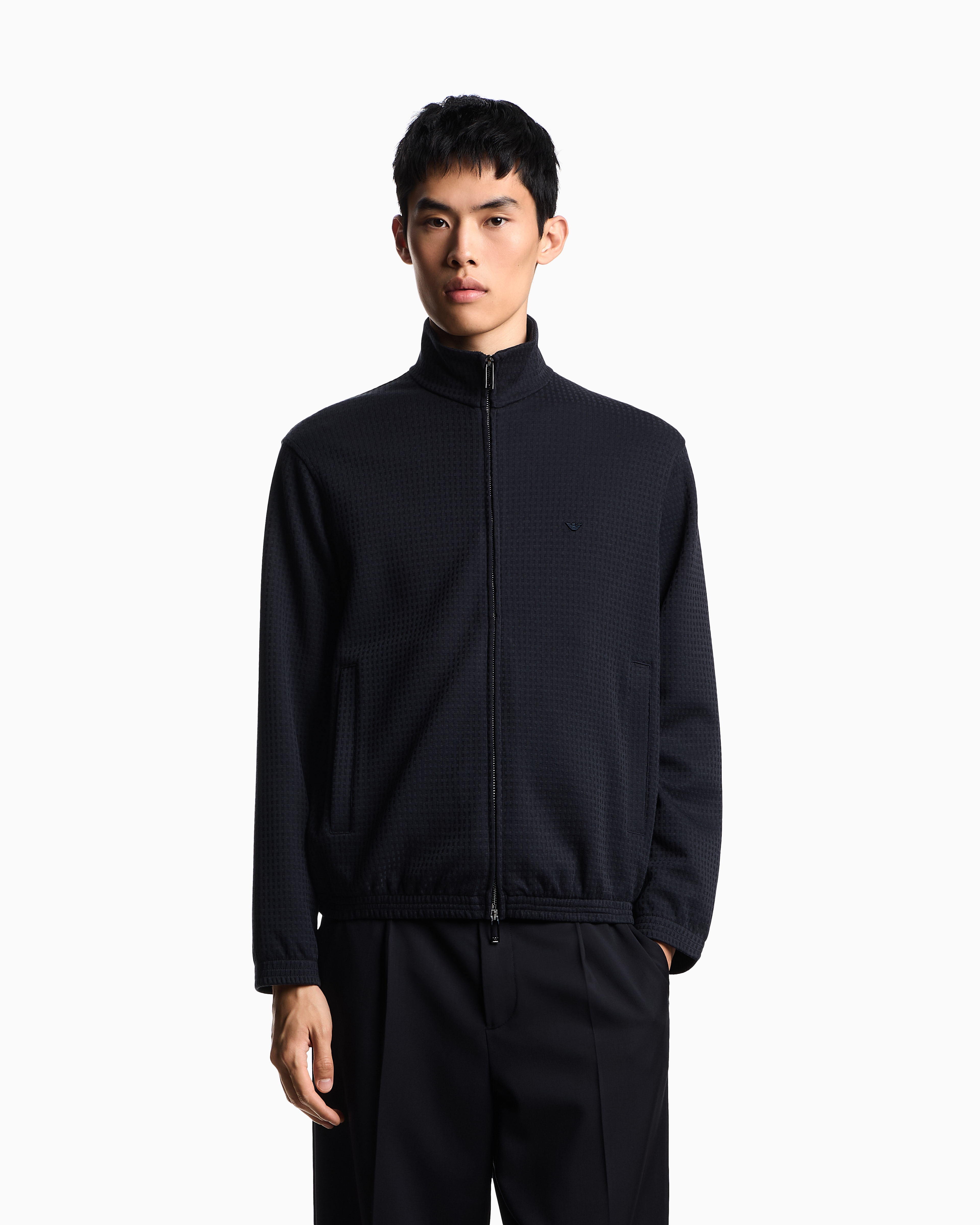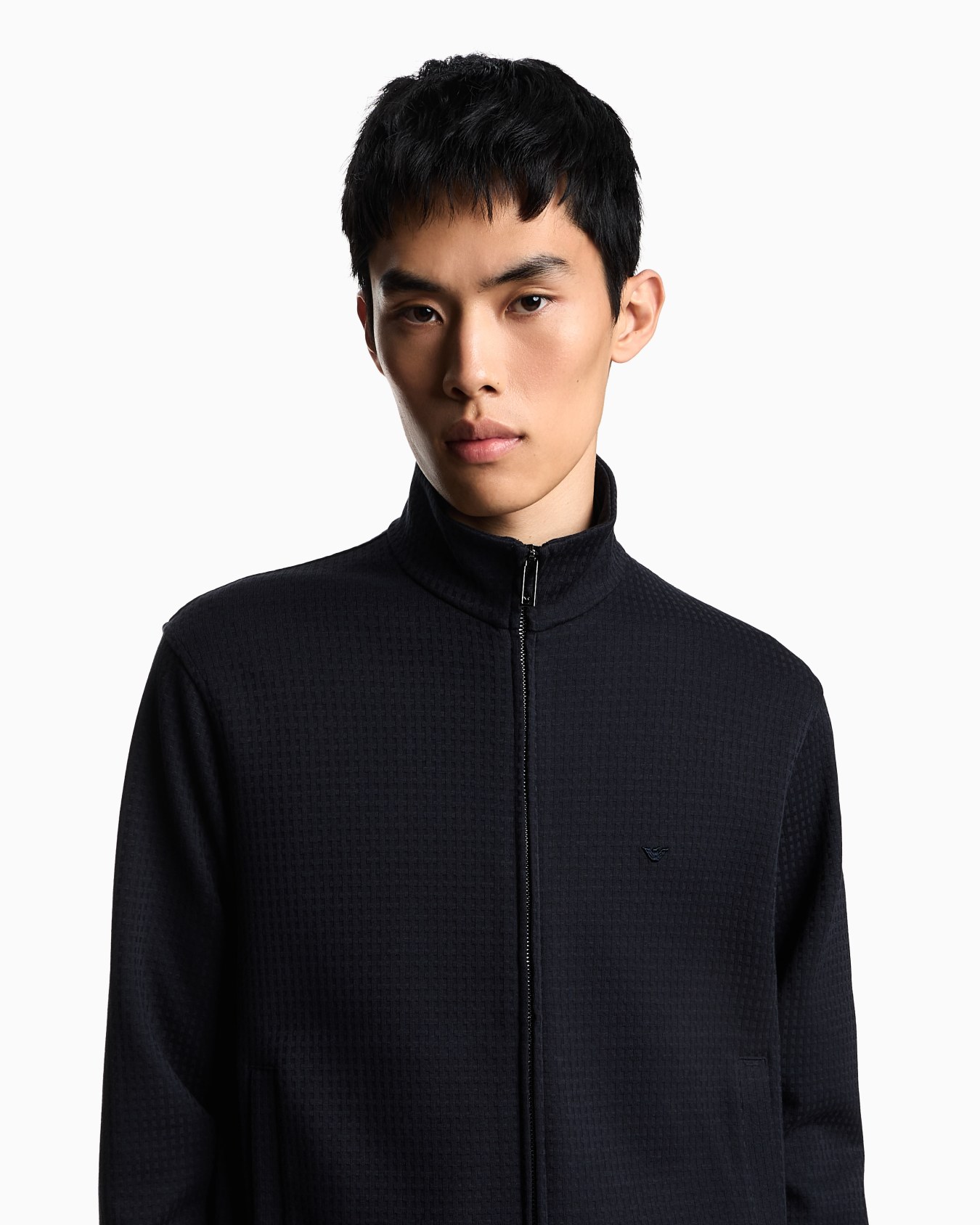 - Embroidered micro-eagle on the chest