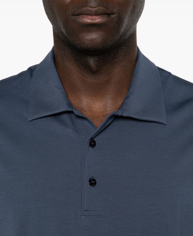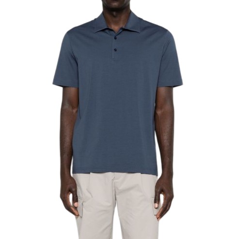 - Blue polo shirt