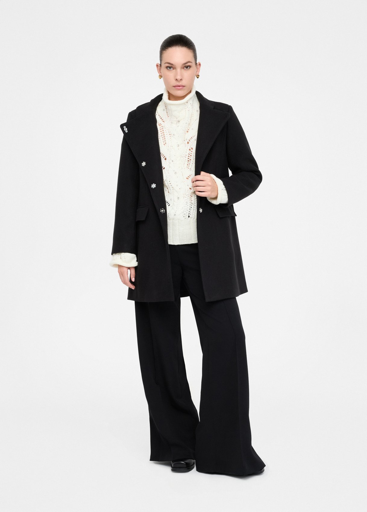 - Black double-faced cloth coat