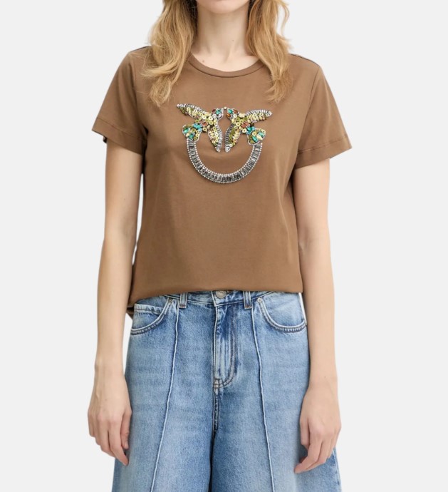 - Love Birds logo decorated with hand-embroidered pearls.