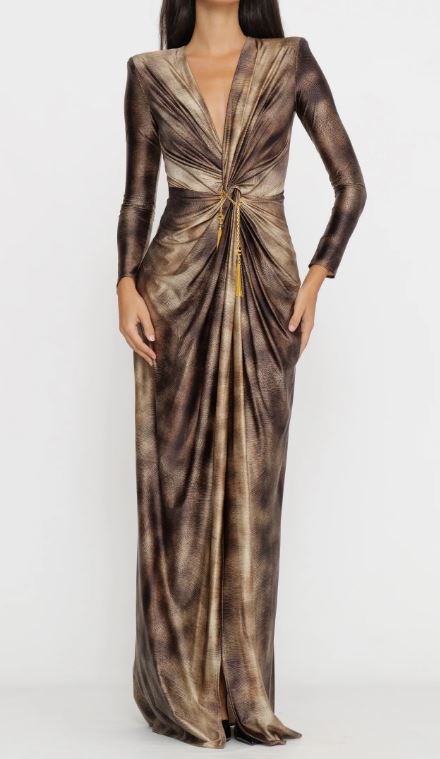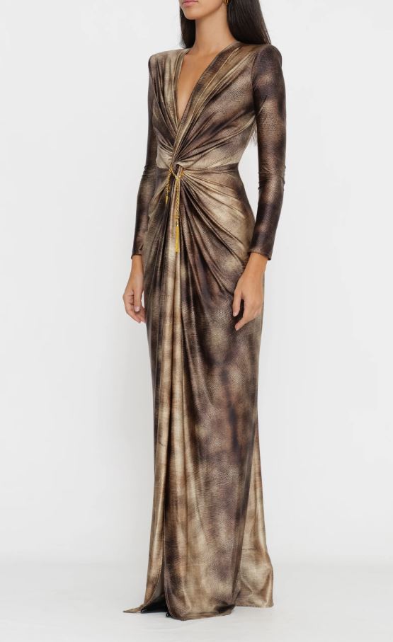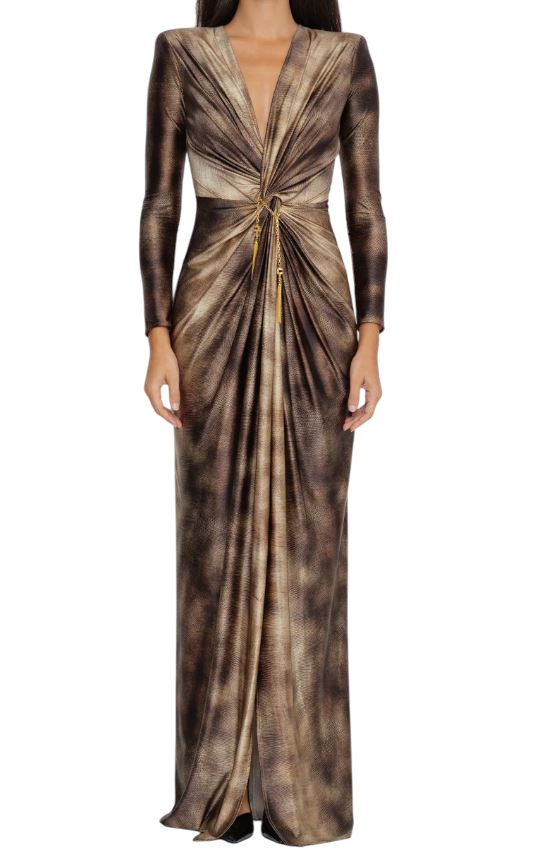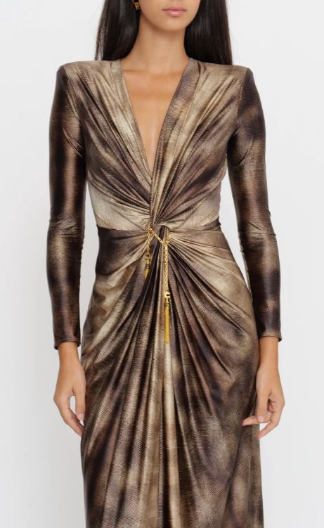 - Noco centrale impreziosito da un gioiello amovibile in catena con nappine
