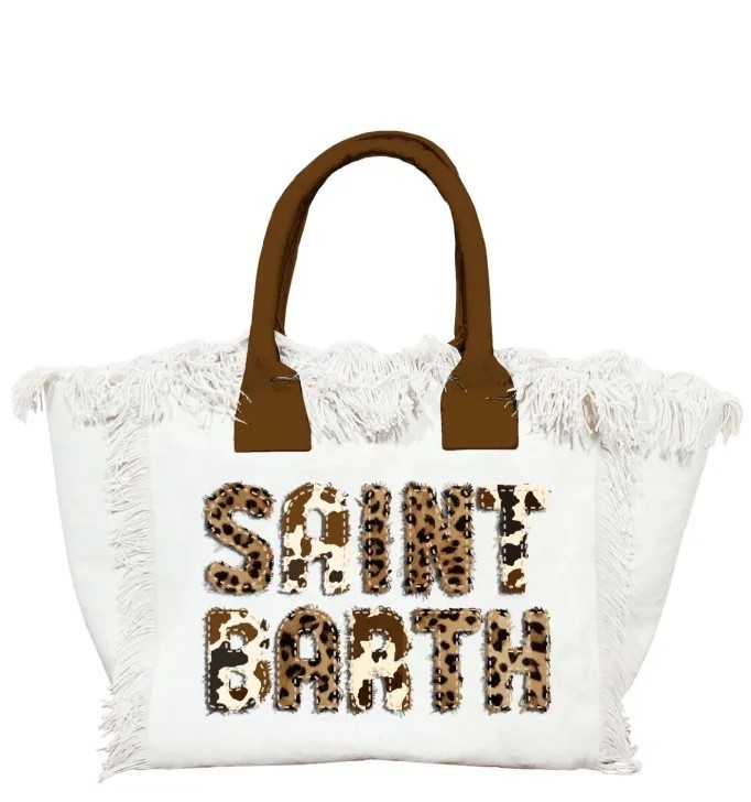 - Maxi logo SAINT BARTH con pattern animalier a contrasto frontale