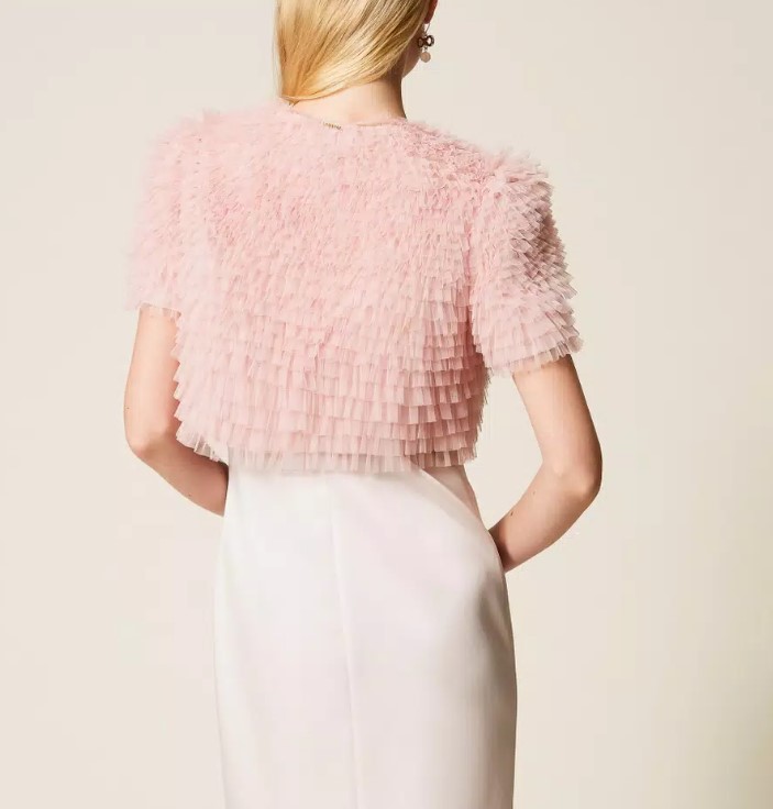 - Realizzata in tulle con micro balze arricciate